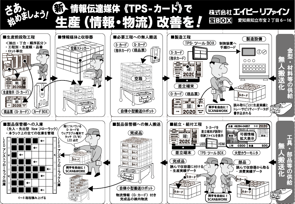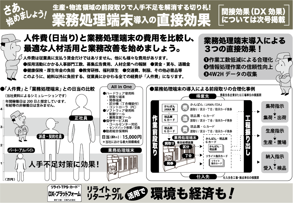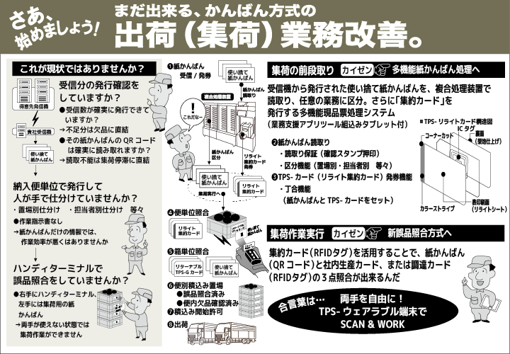 生産・物流業務の作業の効率化を目差し、前段取りで情報媒体を準備し、