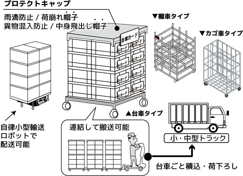 ●運行社・便名・予定時間・発地・経由・行先 積載台車情報の可視化