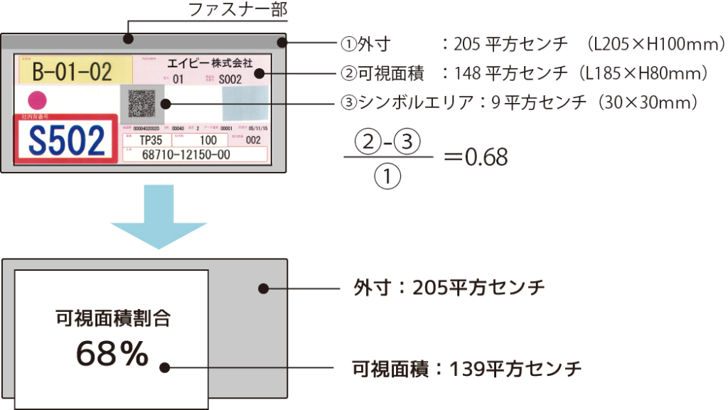 媒体の外寸に対する可視面積(印刷可能エリア)を比較します。 ※シンボル印刷エリアは可視エリアではないため差し引きます。