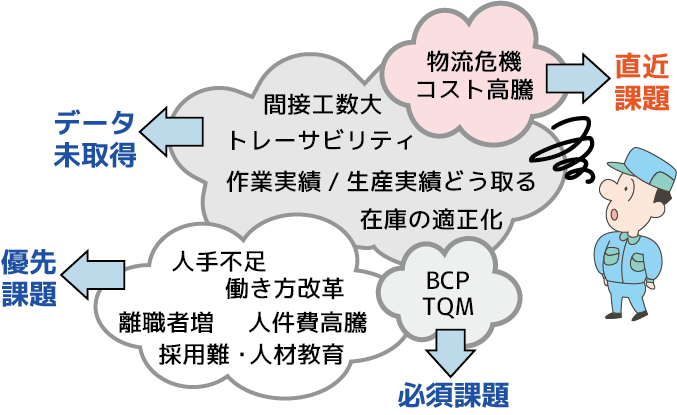 生産・物流業務の作業の効率化を目差し、前段取りで情報媒体を準備し、