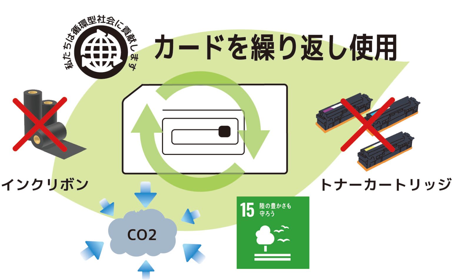 リライトTPS-カードとは、カードの表裏に印刷→追記→消色→洗浄→印刷を繰り返すことで、再利用を可能にするカード。現品票や指示書を発行する度に用紙に印刷し、不要に伴い廃棄し続けている場合に比べ、廃棄物及び廃棄コストを大幅に削減できます。同時に、用紙を削減する事により森林伐採を減らし、製紙工程における電力・水の使用を削減します。しかし、一番のポイントは印刷に関わるトナーやインク等のコストや、機器の維持管理コストの削減が期待できることです。